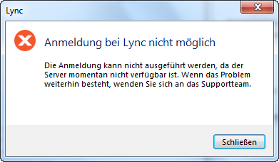 Nur das Anmelden am Lync Dienst wollte nicht klappen.