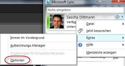 In der Lync Konsole öffnet man zuerst die “Lync - Optionen”.